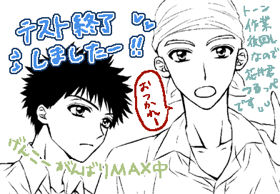 潜伏中(!?)は、試験が間近に控えてるにも拘わらず、現時点も勉強時間ほぼ0状態でひたすら原稿描いてました。