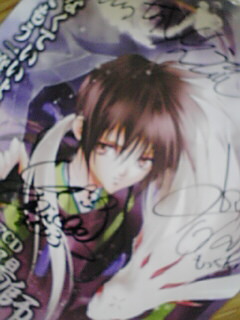 突然自分宛の宅急便が届き、何だろうと思って中身を見ると、なんと少年陰陽師の原作柄で、原作者の結城先生、昌浩役の甲斐田さん、以前のもっくん役の大谷さん3人の直筆サイン入りポスターでした。
